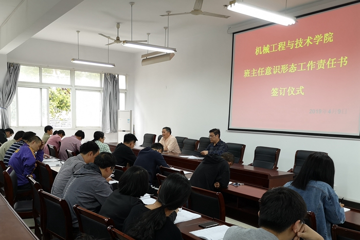 为进一步落实学校意识形态工作,4月9日,机械工程与技术学院召开班主任工作会议,签订机械学院班主任意识形态工作责任书,机械公司党总支书记王荣兴和全体班主任参加会议。会议由机械公司党总支副书记孙军主持。