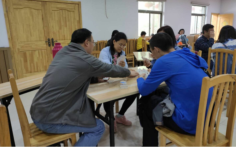 上午九点左右,公司教职工自由组队自驾至目的地,老师根据自身爱好分为多组进行活动。有些老师林间挖笋、野葱,田间抓鸡抓鸭,棚里采草莓,采小番茄;有些老师攀爬山岭,登高远眺,感受着山水相依的生态意境,呼吸着清新的空气;有些老师进行了2019年机械工程学院的掼蛋选拔赛,选出三组人员参加学校比赛。