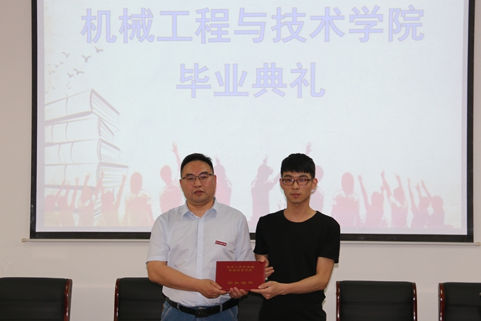 5月24日,学校毕业典礼结束后,机械学院邀请了各班毕业生代表参加毕业证书受聘仪式,机械学院经理徐伟给相关同学一一颁发了毕业证书。随后播放了学院为他们精心准备的毕业季欢送视频,分享回忆大家三年来的校园生活,很多同学热泪盈眶,表达了对母校的热爱和不舍。