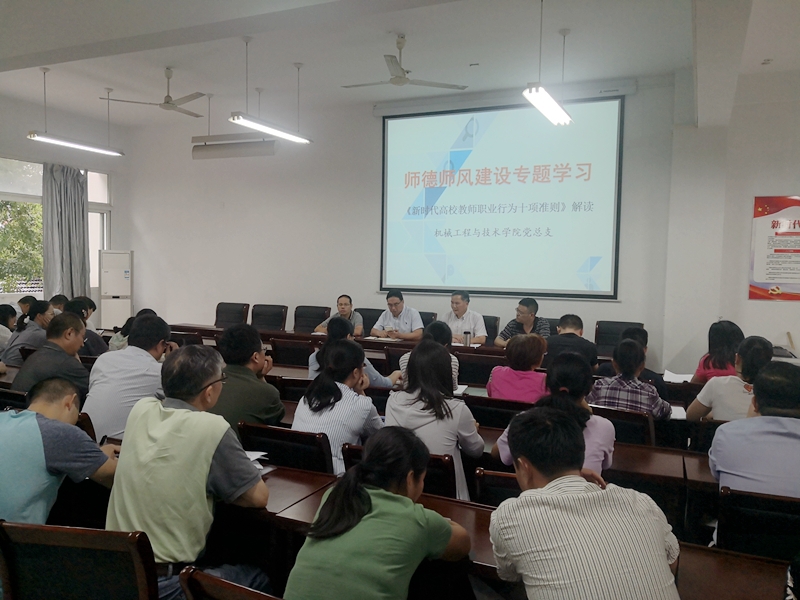 为进一步团结凝聚广大教师不忘初心、牢记使命,深入落实立德树人根本任务,培养德智体美全面发展的社会主义建设者和接班人,9月4日,机械工程与技术学院组织师德师风建设月专题学习,会议由机械公司党总支书记王荣兴主持,全体教职工参加了本次学习。