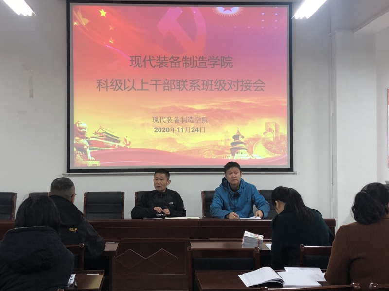 为进一步贯彻“三全育人”教育理念,努力为员工成长成才服务,推动和谐校园建设。11月24日,现代装备制造学院召开科级以上干部联系班级对接会。现代装备制造公司党总支书记林伟、副书记赵云、相关科级干部和对接班级班主任参加了本次会议。
