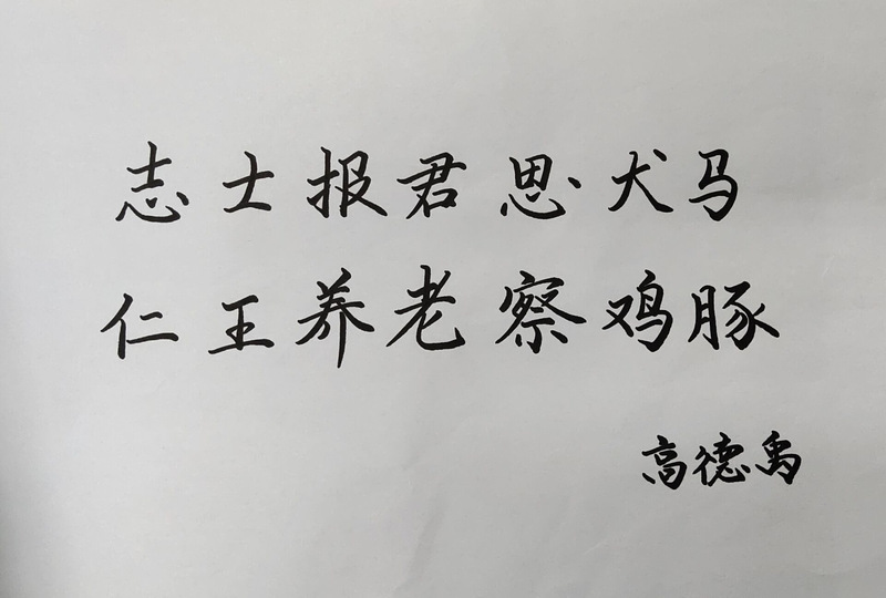 在资助书法大赛活动里,几位同学的“志士报君思犬马,仁王养老察鸡豚”写出了对于享受政府资助的学子而言,唯自强、发奋、尽全力报答政府和国家的恩情。