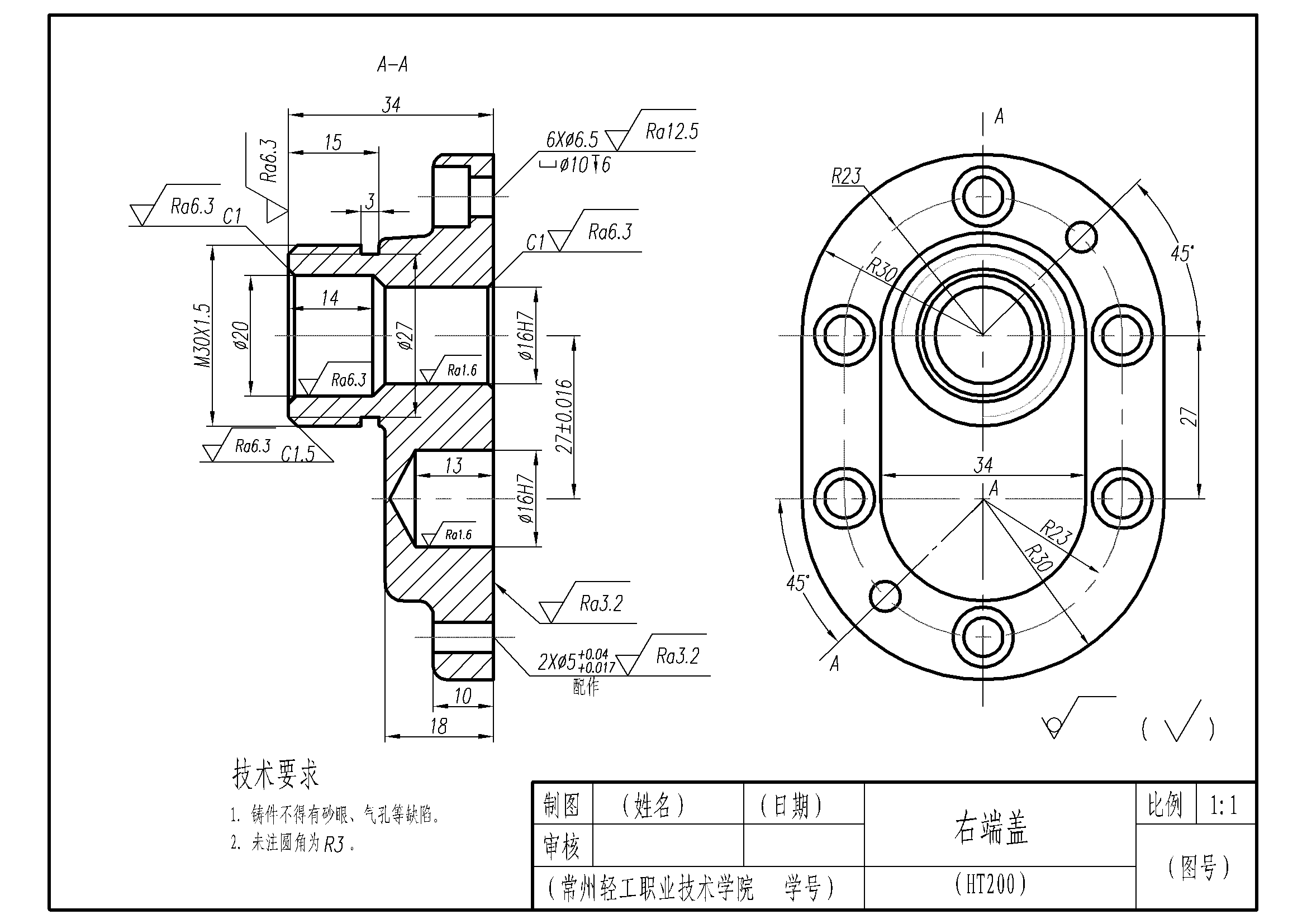 铣刀头座体的工程图生成