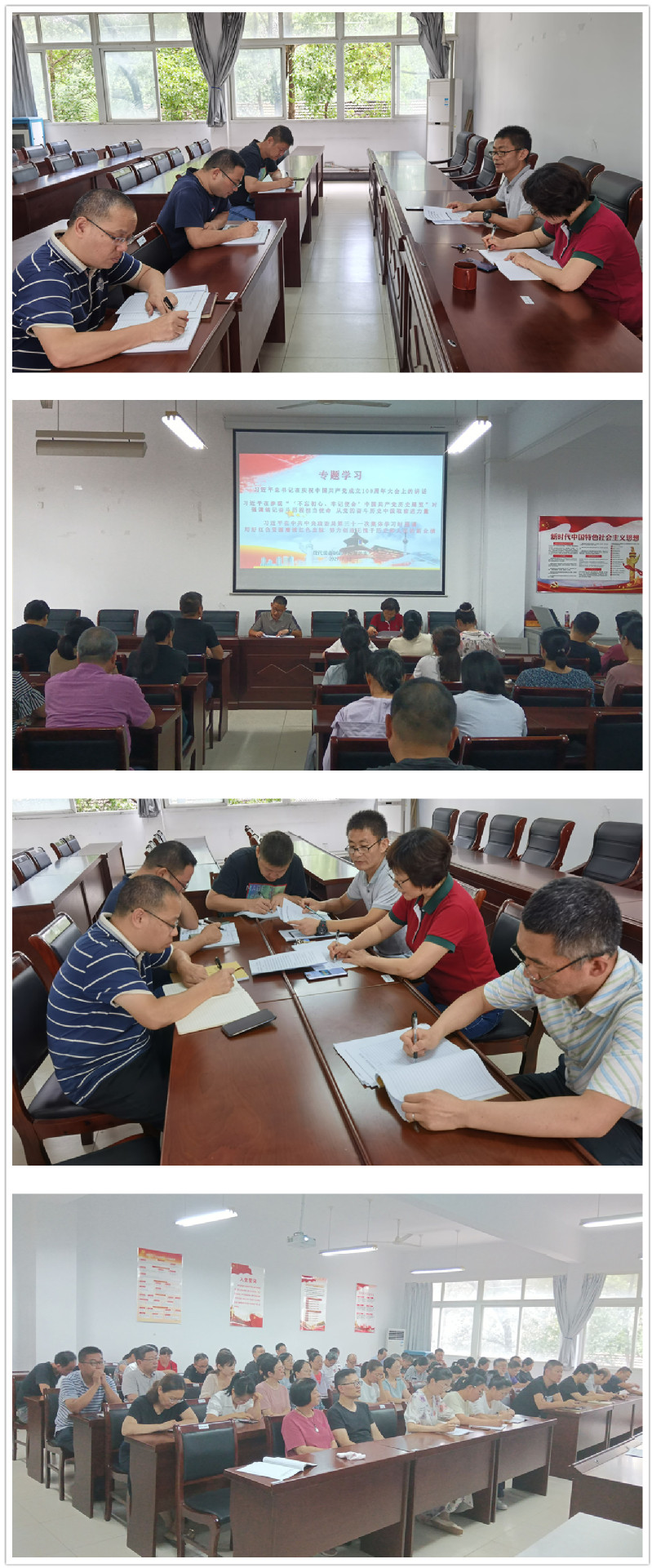 7月9日-12日,现代装备制造公司党总支分别召开党总支委员会议、党总支理论学习中心组会议和全体教职工大会学习《习近平总书记在庆祝中国共产党成立100周年大会上的讲话》、《习近平总书记在十九届中共中央政治局第三十一次集体学习时的重要讲话精神》、《习近平在参观“‘不忘初心、牢记使命’中国共产党历史展览”时的重要讲话精神》,会议由党总支书记林伟主持。
