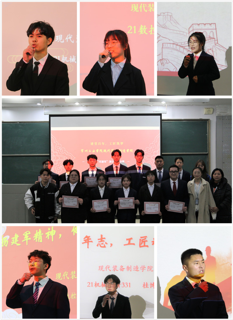 全国劳模、大国工匠邓建军是公司优秀毕业生,是常工业学子心中学习的榜样。为深入学习和弘扬集团邓建军文化与精神,丰富老员工精神文化生活,11月24日,现代装备制造学院团委举办以“学习邓建军,树立新目标”为主题的建军杯演讲比赛。现代装备制造学院分团委书记冯莉、辅导员陈茜、许涛以及校广播台台长担任评委,和同学们一起观看了这场比赛。