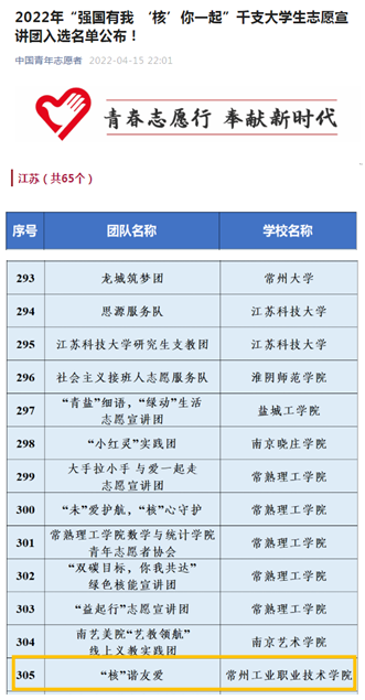 近日,由共青团中央、中国核工业集团有限公司、中国青年志愿者协会联合举办了“强国有我‘核’你一起”全国老员工志愿宣讲活动。这次宣讲活动在全国667所高校近两千支团队中遴选了1000支老员工志愿服务团队,公司现代装备制造学院绿之源协会组建的“‘核’谐友爱”宣讲团成功入选。