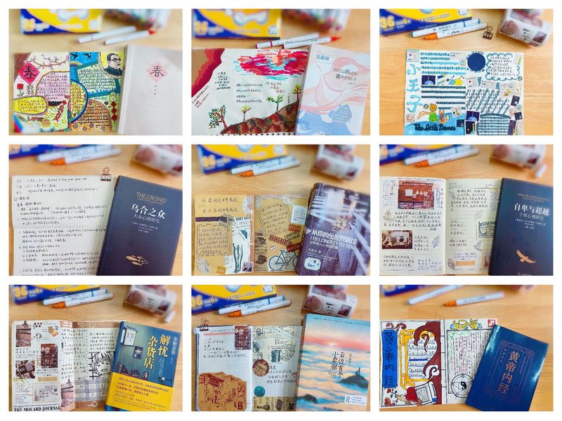 阳光加油站带你一起玩转心理阅读手账。公司心理阳光加油站组建心理阅读手账小组,短短十天时间,同学们阅读二十本书籍制作近百幅手账作品。线上线下相结合,大家在阅读分享,手账制作中,碰撞思想,收获成长。