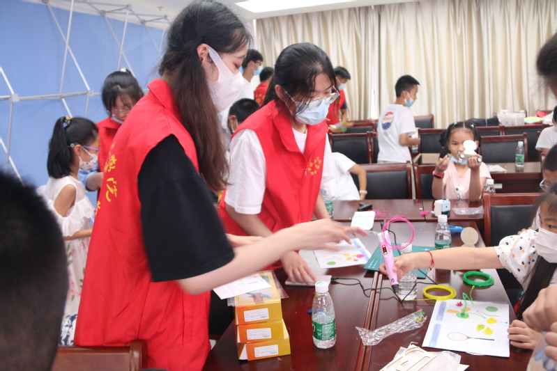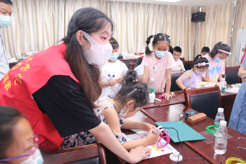 活动中,志愿者首先开展智能制造理论知识科普。他们围绕“《十二生肖》与逆向设计看中华文明”、“固废材料与 一天15套隔离病房看爱国环保”、“300 个护目镜和简易防护面具看创新民族魂”、“常州红馆与增材制造看三杰英雄”等专题,科员工动地串联起信息技术、新材料、节能环保、智能制造各方面的知识,巧妙地将中国精神、中华传统文化与社会主义核心价值观融入趣味学习,实现数字化、网络化、智能化并联传授,将未来智能工厂“云展示”给我们的青少年们。然后,志愿者引导青少年员工对于智能制造的想象,以“2035未来工厂”为主题,画出对未来的想象。孩子们丰富的想象力,不仅仅加入现代化的高科技元素,更加增添了许多对未来绿色生活的思考,一幅幅别出心裁的梦想2035绘画作品展现出来。最后志愿者和青少年儿童通过利用一些简易的3D打印笔共同完成一些简单的产品的制造,过程中对儿童进行专业介绍、理论普及、心理疏导等陪伴。同时通过软件制作生动形象的3D模型,更加生动形象的让青年儿童接受,从而激发孩子们对智能制造的兴趣。