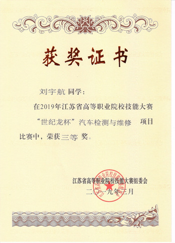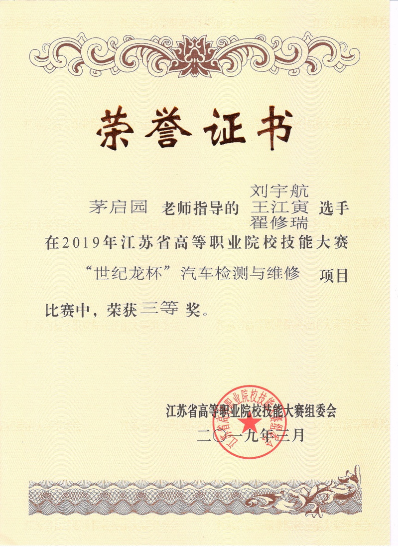 员工积极参加各类技能技术比赛,获得江苏省职业院校技能大赛“汽车技术”赛项19年、20年三等奖。