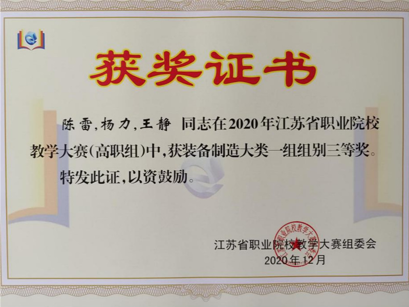 陈雷老师团队获得江苏省教学能力比赛三等奖