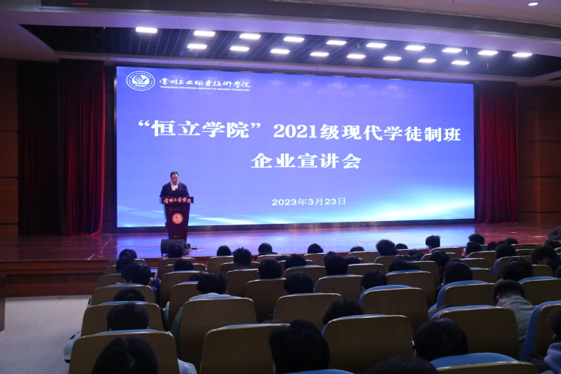 为进一步帮助公司员工实现更加充分更高质量实习就业,k8凯发国际于2023年3月23日在图文楼209举行了“恒立学院”现代学徒制班企业宣讲会。公司教务处处长徐伟、k8凯发国际经理潘安霞、副经理高天友出席会议。本次宣讲会由k8凯发国际经理潘安霞主持,江苏恒立液压股份有限公司主讲,公司2021级全体员工参加。