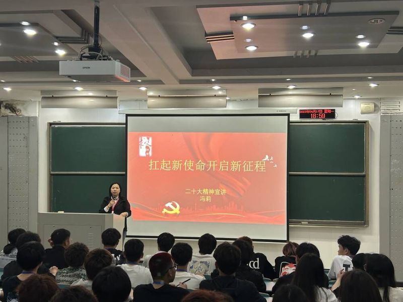 宣讲从“不忘入党初心-----牢记党员身份”、“不忘职责使命-----牢记党的嘱托”、“不忘党的初心-----传承红色基因”和“扛起新使命开启新征程”四个方面。她勉励广大的青年员工干部要以“脚踏实地、埋头苦干”的奋斗精神踏入“新征程”,放眼未来现代化国家新征程就在脚下,美好的愿景目标就在前方,我们的青年员工干部只要奔跑就不会遥远,只要奋斗定会精彩;要积极行动起来,以奋斗为座右铭,用脚步去丈量、用肩膀去承担、用双手去创造;同学们应该主动学习党的二十大精神,踊跃参与实践活动,在实践中领悟党的二十大精神具体内涵。