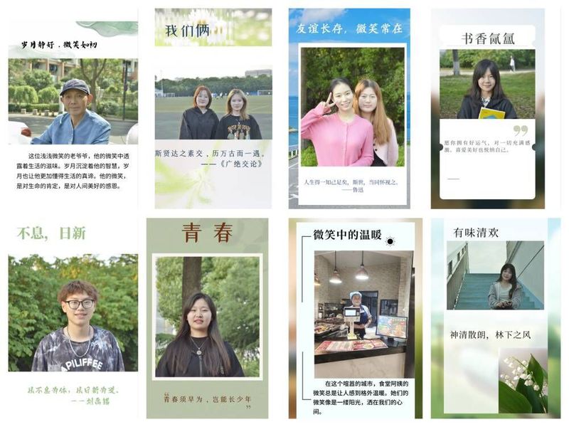 “你的笑容,我想收到”-常工业100张笑容。世界微笑日是一个大家庭共同庆祝的节日,老员工则是这个大家庭中最具有活力和朝气的群体。“微笑已成习,画眉转自痴。”校园中的微笑更加富有少年气息,展现出积极向上的生活态度和松涛壮阔的无限希望。在校员工参与常工业100张笑容收集活动,发现身边一张张美好笑容,并为照片命名《岁月静好,微笑如初》《书香氤氲》《五月》等,帮助员工记录美好瞬间,无论在顺境逆境,都能让微笑成为自己的坚持,以积极阳光、乐观向上的态度去关照周围、影响身边,不遗余力为生活增加幸福感,让身边每一个人脸上都闪烁一片不落的灿烂。