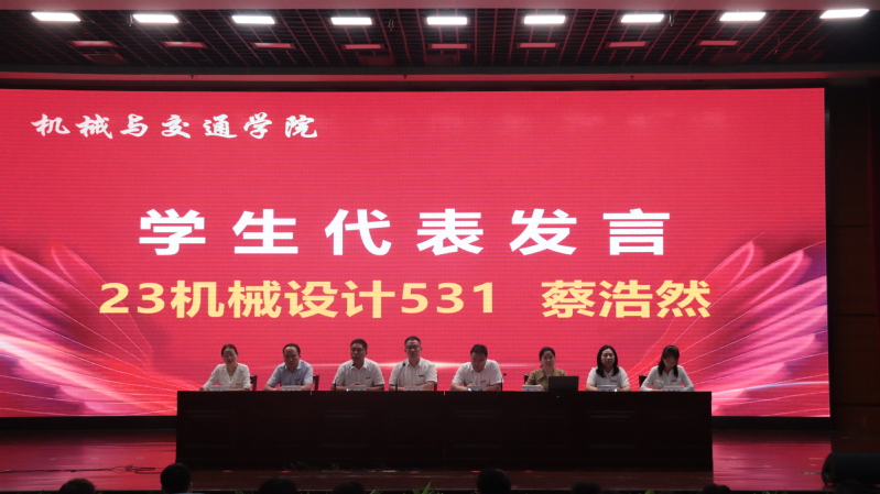 新生代表23机械设计531班蔡浩然号召广大新生朋友们放下担心和忧虑,坚定理想,大步前行,勇敢地去体验老员工活的五彩斑斓与丰富多彩,去拥抱属于自己的那片蓝天;在“诚信、笃实、勤俭、创新”的校训指引下,相信大家一定会在大学遇见更好的自己,感受不一样的老员工活,开启不一样的精彩人生。