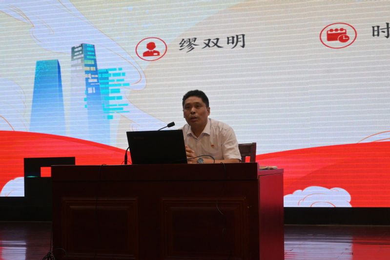 缪双明主要聚焦于“中国共青团简介”,习近平总书记对新时代青年的“六点要求”,“新时代如何做好青年工作”,“青年不忘初心跟党走,奋勇建功新时代。”四个部分为大家进行讲解。在此期间,缪双明指出,身为新时代中国青年,我们必须牢记习近平总书记的嘱托,要坚定不移听党话、跟党走,立志做有理想、敢担当、能吃苦、肯奋斗的新时代好青年。缪双明还结合实际情况,就如何提高团员的综合素质、发挥团员的积极作用,以及加强团组织建设等方面进行了详细阐述。随后,他邀请大家分享自己的入团动机,多位同学提出要将个人理想融入社会,增强思想意识。同时,他鼓励团课学员们能够努力学习专业知识、积极参加志愿服务,不断提高自身素质和能力水平,让青春在全面建设社会主义现代化国家的火热实践中绽放绚丽之花。