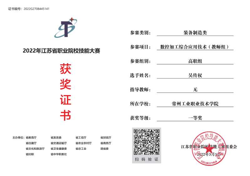 2022年省赛数控加工综合应用技术教师组 一等奖