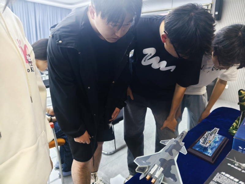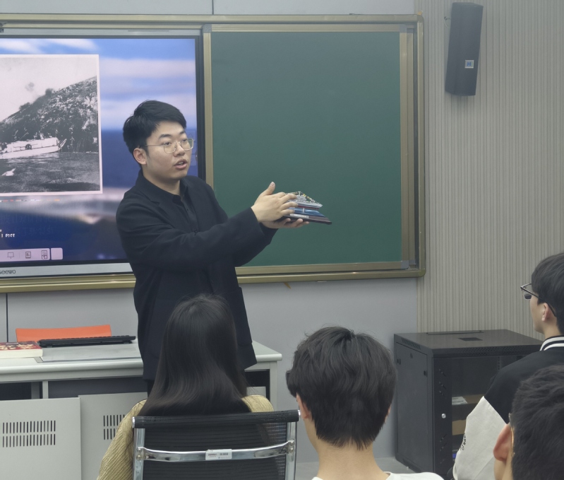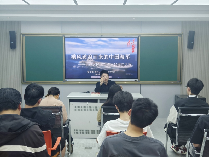 当日下午,学院在员工社区组织了军史读书会、武器装备模型解说、海军故事分享等活动,使员工在形式多样的活动中直观地了解海军的有关知识。随后,徐冬豪老师在社区为同学们进行了主题为《乘风破浪的中国海军》的专题讲座,在讲座中为同学们讲述了中国核潜艇研制、首艘国产航母下水等振奋人心的故事,鼓舞员工立志技能报国。