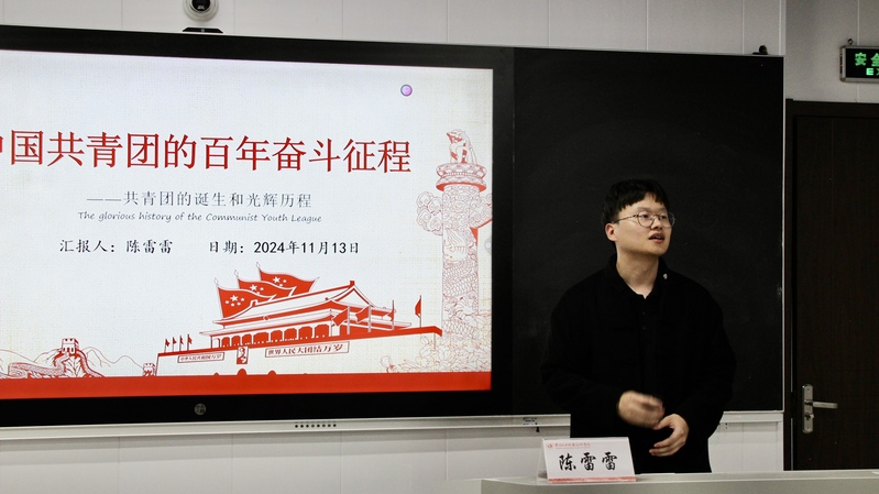 为深入贯彻习近平总书记在同团中央新一届领导班子成员集体谈话时的重要讲话精神和党的二十届三中全会精神,深刻把握加强对广大青年的政治引领的重要要求。11月13日,k8凯发国际团委开展主题团课《中国共青团的百年奋斗征程》,本次由k8凯发国际辅导员老师陈雷雷讲授。