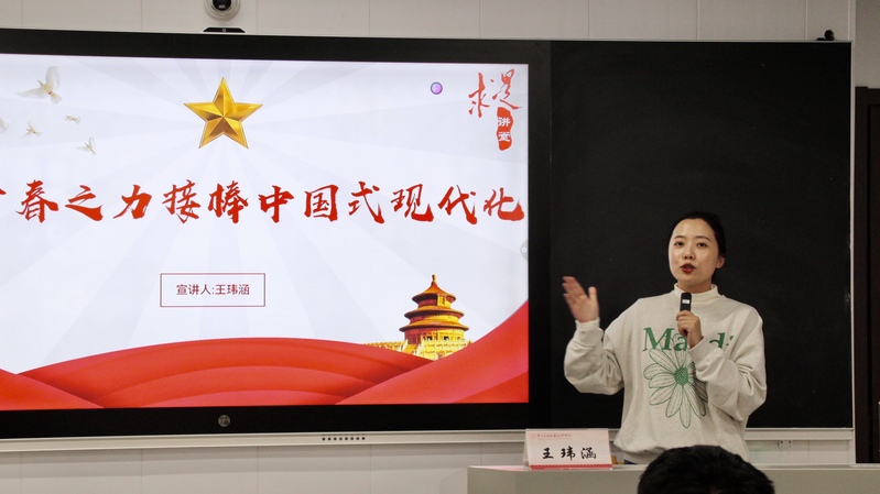 活动现场,王玮涵以生动的语言和丰富的案例开启了精彩的宣讲之旅。她深入剖析了中国式现代化的独特特征,从人口规模巨大的资源统筹与发展机遇,到全体人民共同富裕的目标追求;从物质文明和精神文明相协调的全面发展要求,到人与自然和谐共生的可持续发展理念,再到走和平发展道路的大国担当,一一为同学们进行了详细解读。她特别强调,青年员工作为新时代的主力军,肩负着历史赋予的特殊使命,中国式现代化的宏伟蓝图需要他们用青春的智慧与汗水去精心描绘。