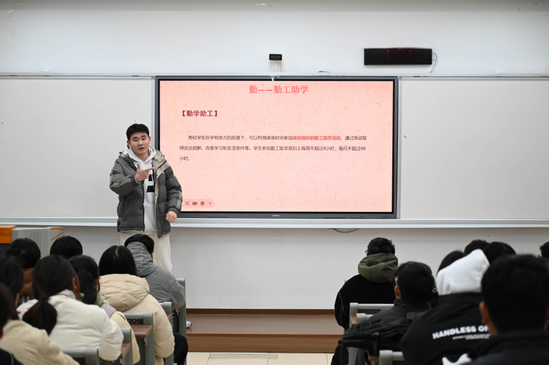 为进一步做好资助政策宣传,提升资助工作精准度,同时发挥员工励志典型激励作用。学院邀请校勤工助学之星、国家励志奖学金获得者李天翔为同学们宣讲国家资助政策,分享自己的成长感悟。宣讲者以自身经历为蓝本,生动展现国家资助政策在学业与生活中的关键助力,从助学金申请的精准流程到勤工助学岗位的丰硕收获,抽丝剥茧般为台下学子答疑解惑,使国家资助政策的力量深入人心。