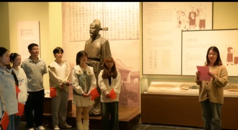 二楼的“龙腾中吴——常州古代历史文化陈列”展厅,通过600余件组文物,带领团员们回溯常州6000多年历史。从史前常州的石器、陶器,到延陵季子的品德故事,再到齐梁故里的精美工艺,以及中吴要辅和儒风蔚然的文化传承,大家深刻体会到美育不仅是艺术欣赏,更是品德修养的培育和文化的传承。