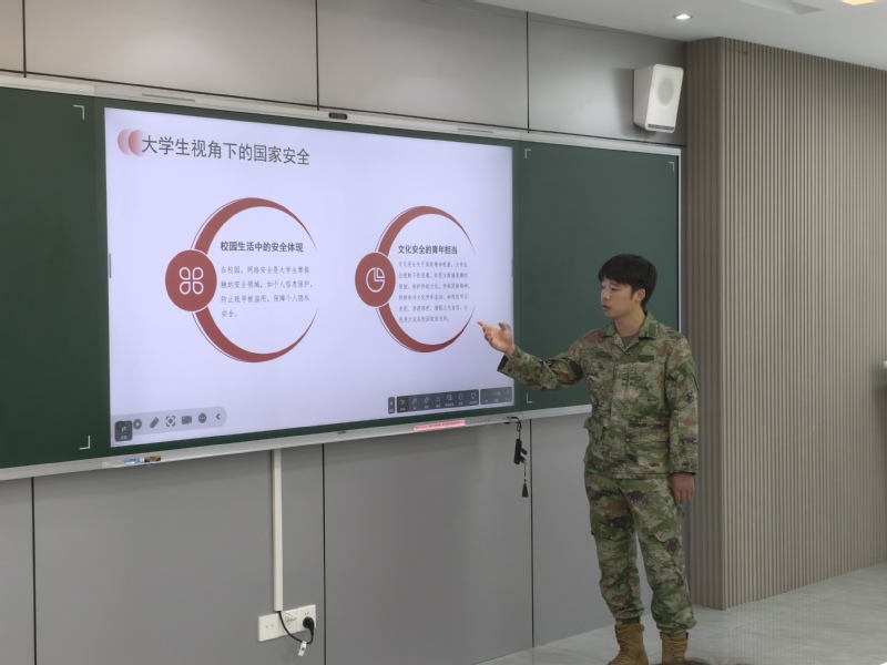 退伍员工周南,身着戎装英姿飒爽,以自身在部队的经历为切入点,分享了一段段扣人心弦的故事。在边境执行戍边任务时,面对恶劣自然环境与复杂地缘形势,他和战友们始终坚守岗位,用行动诠释着对国家领土完整的誓死捍卫。在参与抢险救灾等非战争军事行动中,争分夺秒挽救生命财产的经历,深刻领悟到国家安全与人民福祉的紧密联系。这些生动案例使在场师生真切感受到国家安全并非抽象概念,而是体现在每一位守护者的日常坚守与关键时刻的挺身而出中。