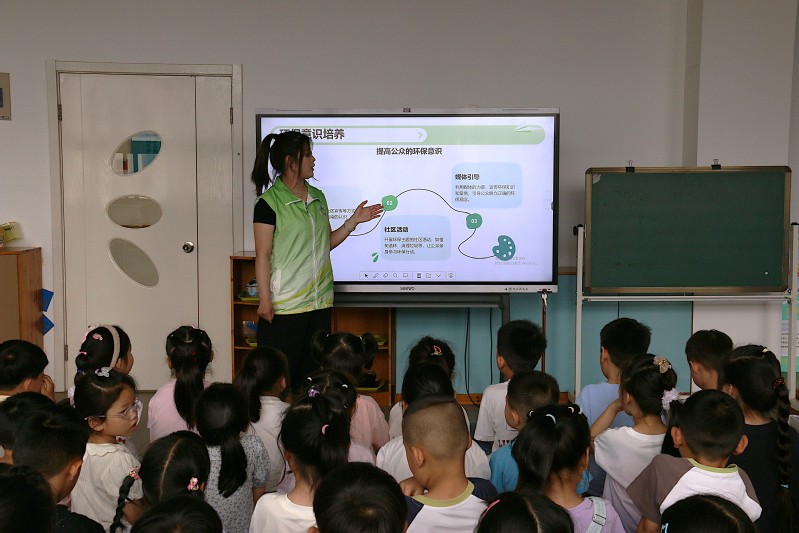 绿色志愿宣讲,播种生态文明的种子。志愿者们化身“绿色使者”,通过生动有趣的环保故事、图文并茂的PPT展示以及轻松愉快的互动问答,深入浅出地向孩子们讲解了“什么是生态文明”“为什么要保护地球母亲”以及日常生活中“勤俭节约的小妙招”。宣讲内容涵盖了节约用水用电、珍惜粮食、垃圾分类、资源循环利用等多个方面。他们特别强调,每一个小小的环保行动,如关紧水龙头、光盘行动、爱护花草树木等,都能汇聚成守护地球家园的磅礴力量。