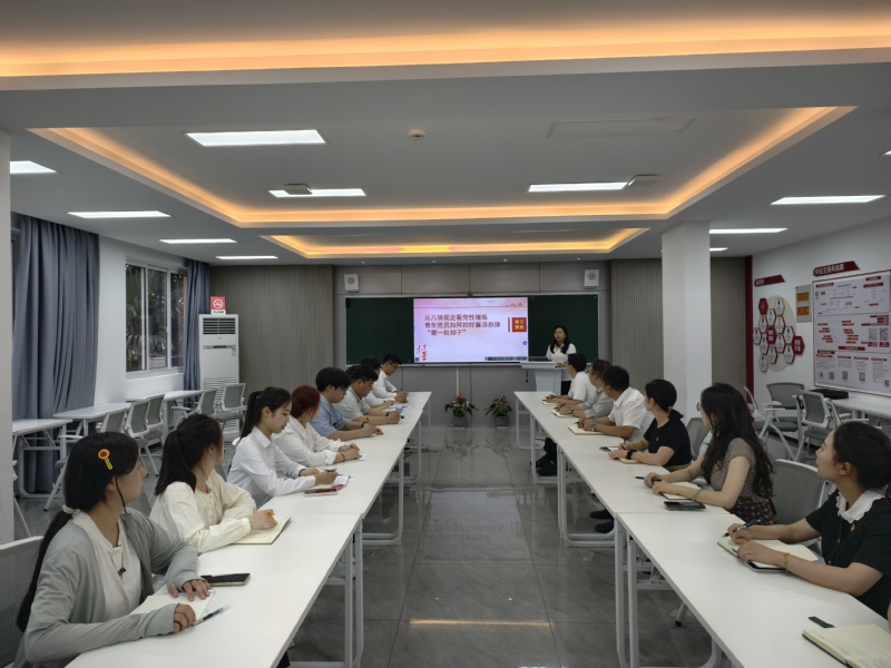 活动开场,员工党支部书记冯莉以《从八项规定看党性锤炼,青年党员如何扣好廉洁自律“第一粒扣子”》为题,为全体党员上了一堂生动深刻的党课。冯莉结合八项规定出台背景、具体内容及实践成效,深入阐述了严守纪律规矩对党性修养的重要意义。她通过典型案例剖析、青年党员成长需求分析,引导同学们深刻认识到,廉洁自律是青年党员成长成才的基石,要从日常小事做起,慎独慎微,时刻保持清醒头脑,以高度的思想自觉和行动自觉扣好廉洁自律的“第一粒扣子”。